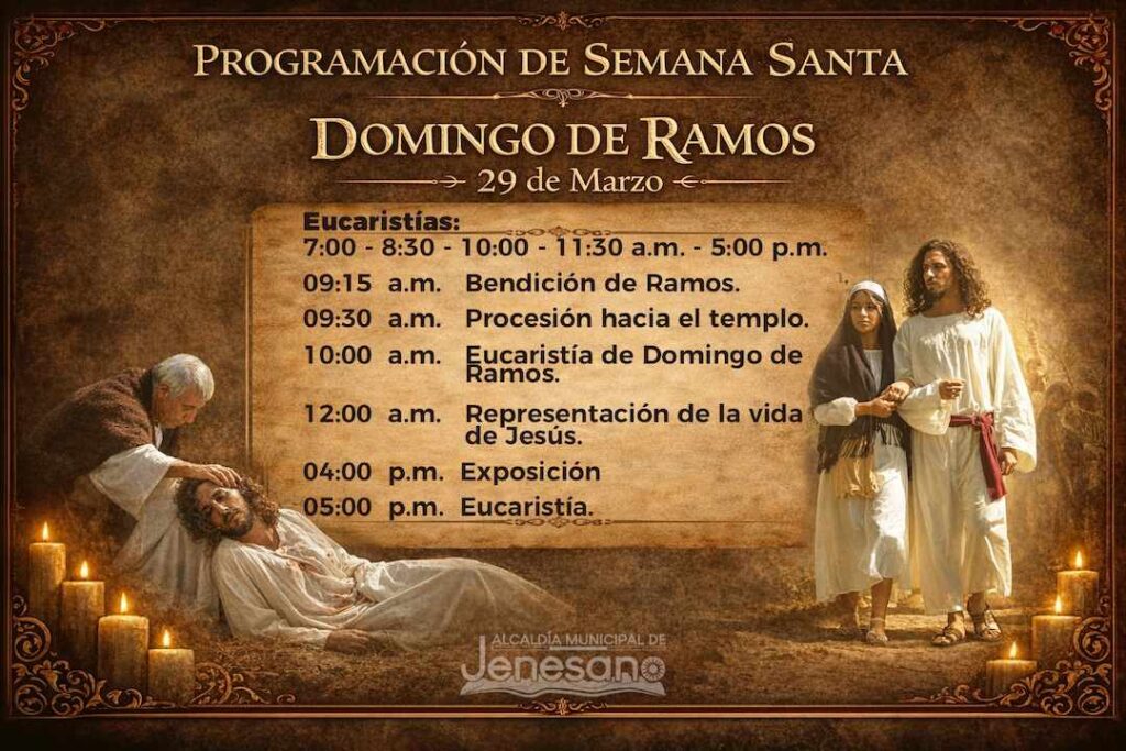 A continuación podrá ver la programación de la Semana Santa en Jenesano, para que se programe: